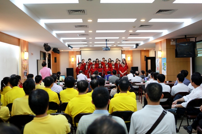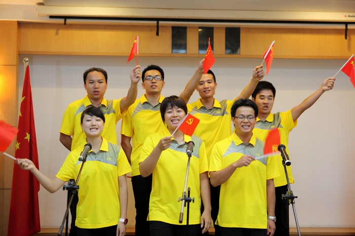 为庆祝中国共产党成立90周年华诞,7月1日上午,房建集团党委在总部会场举办了一场气氛庄严热烈的“庆七一红歌赛”。这次活动得到各单位的重视和支持,集团 10个单位共选送了23个节目,独唱、合唱歌曲各占一半。