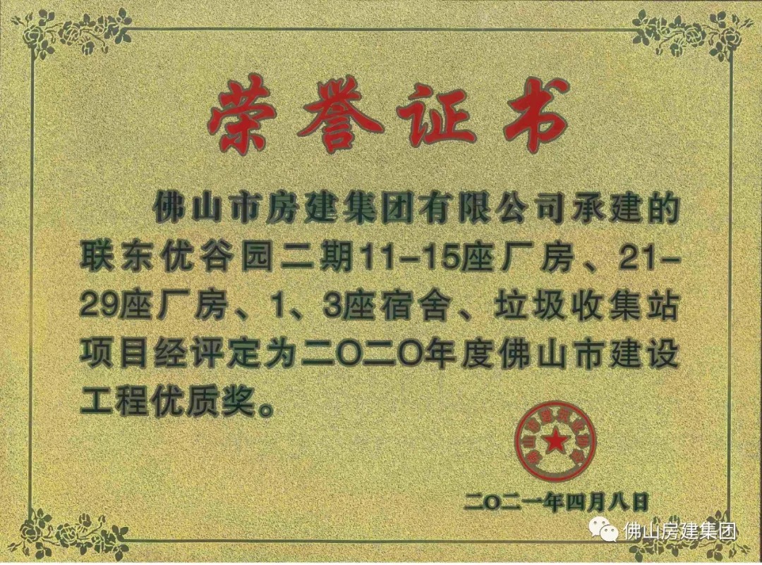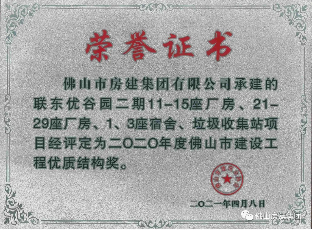 联东优谷项目荣获佛山市建设工程优质结构奖