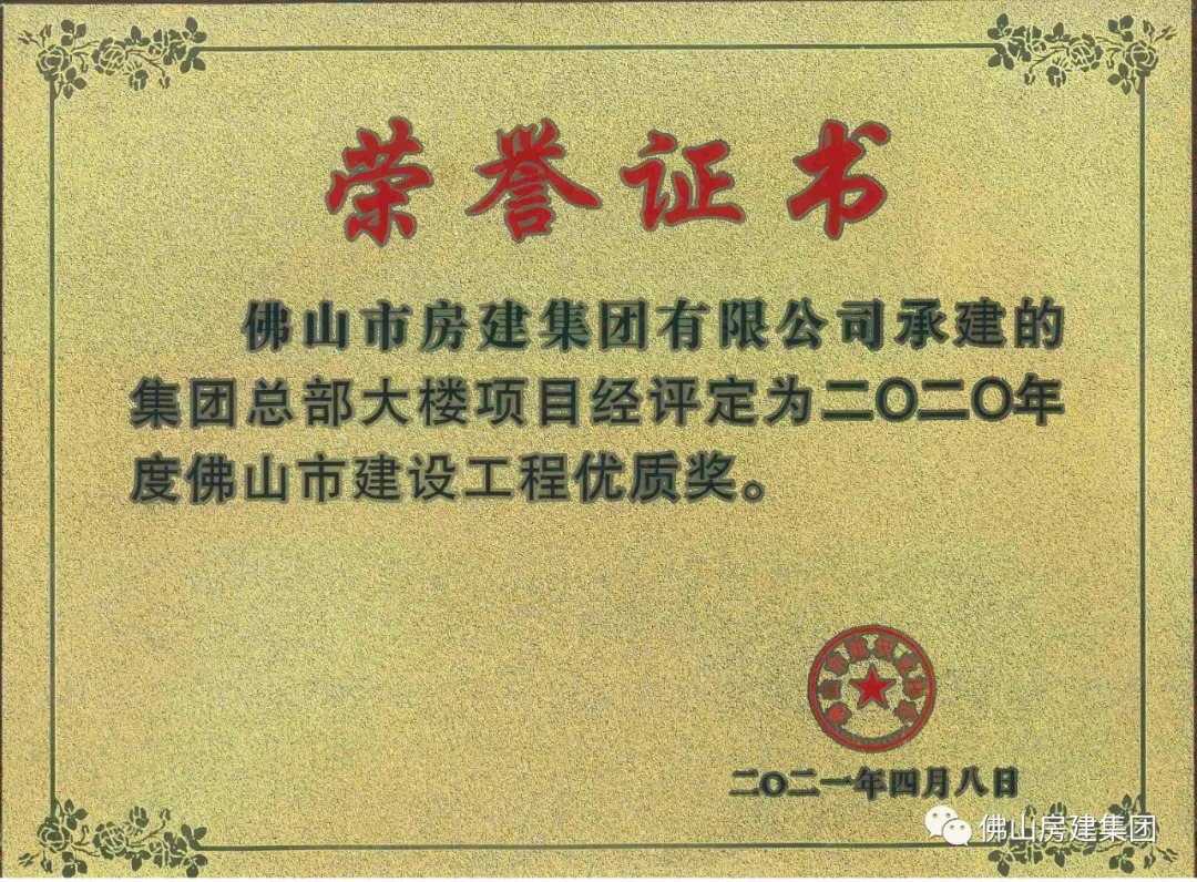 集团总部大楼项目荣获佛山市建设工程优质奖