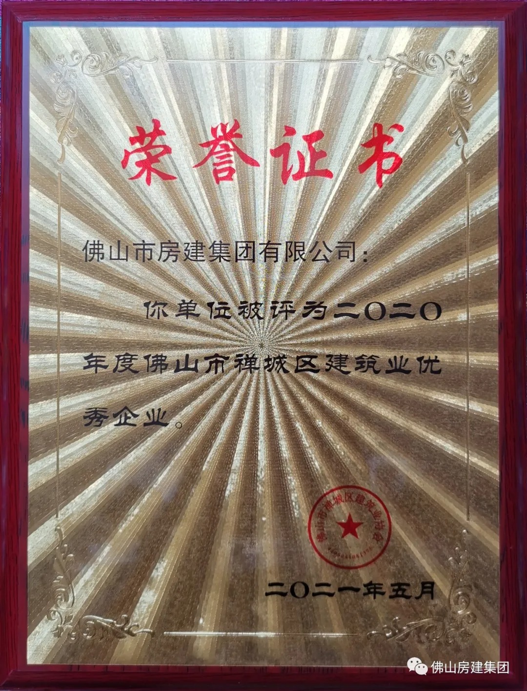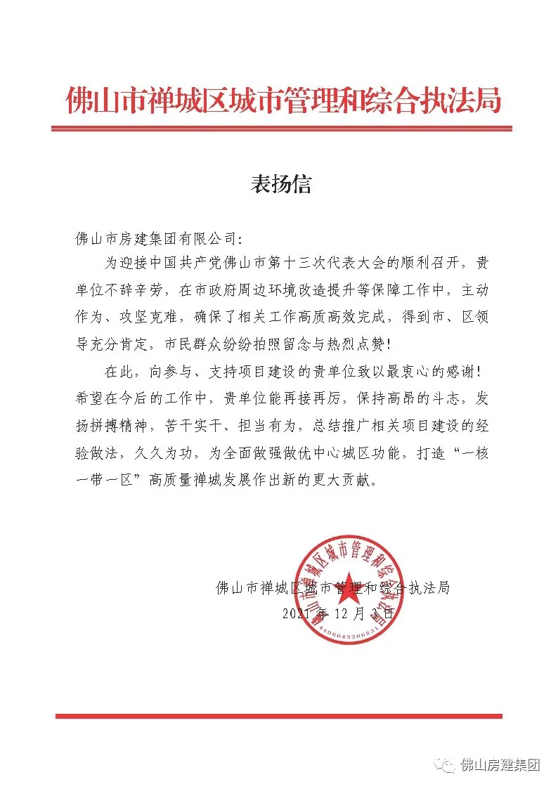 房建集团荣获佛山市禅城区优秀施工企业称号