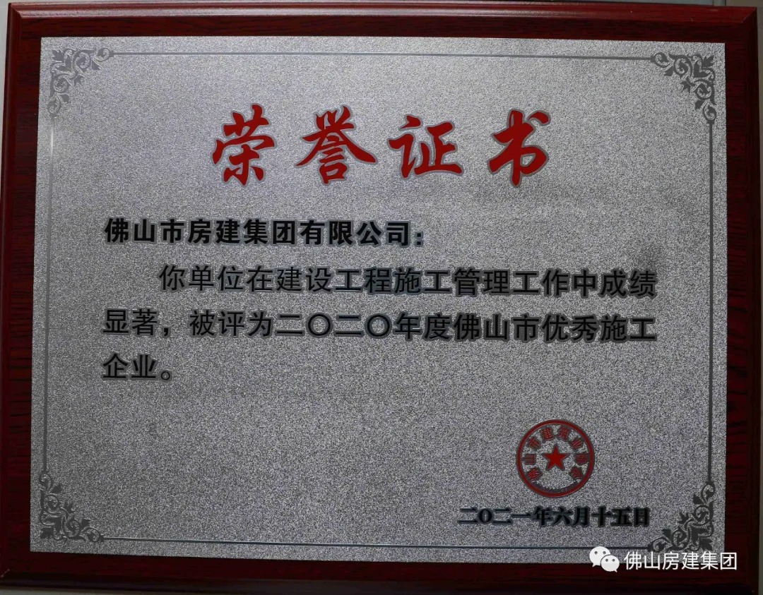 房建集团荣获佛山市优秀施工企业称号