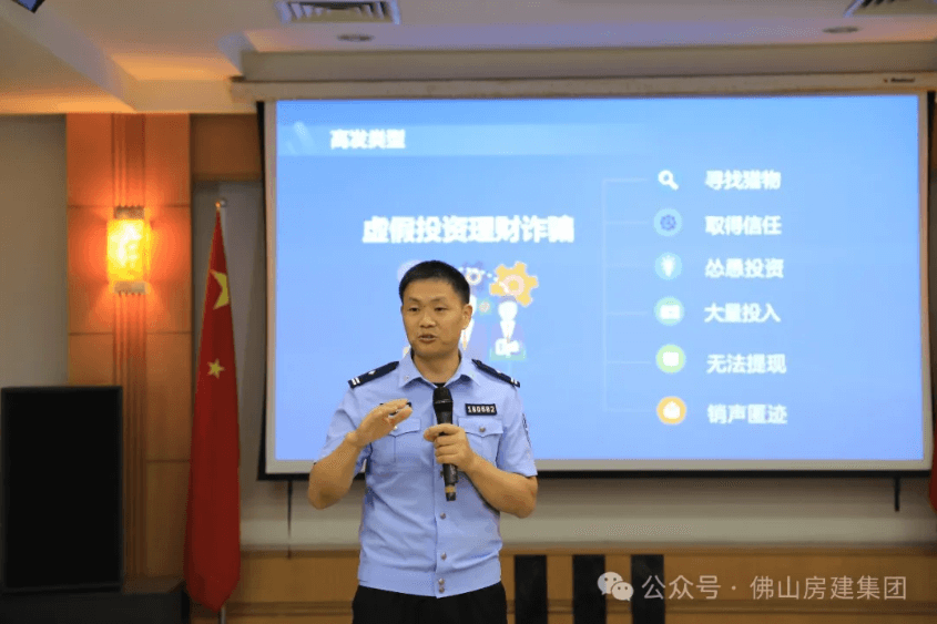 为强化职工反诈意识、提高识骗防骗能力,加强企业风险防控能力、提升合规管理水平,日前我司举办了企业风险防控和反诈宣传法律讲座,特别邀请了佛山市公安局刑警支队第五大队副大队长曾焕威和佛山市反诈骗中心黄绍斐警长进行授课。董事会领导、集团中高层领导、总部职能部门全体人员参加本次讲座。
