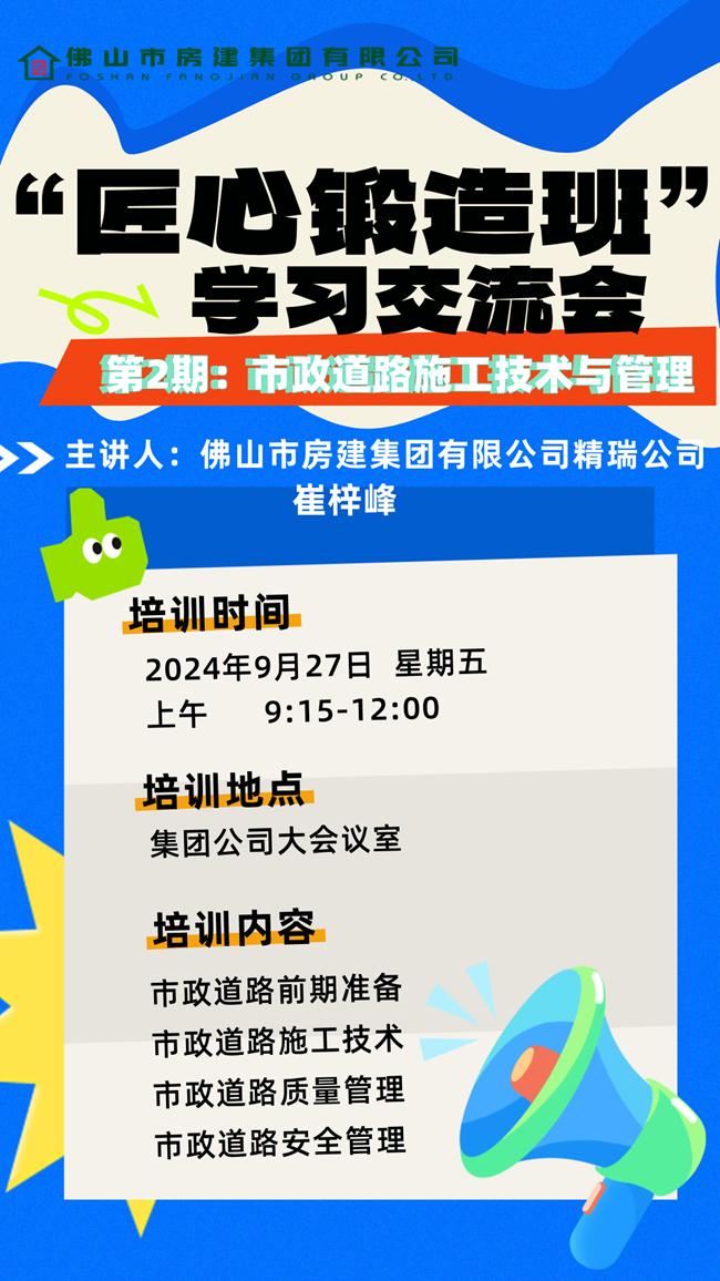 为进一步强化施工现场管理水平,提高员工理论和业务素质,促进青年员工快速成长,9月27日“匠心锻造班”系列培训讲座第二期火热开班。
