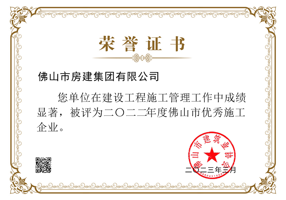 2022年度佛山市优秀施工企业